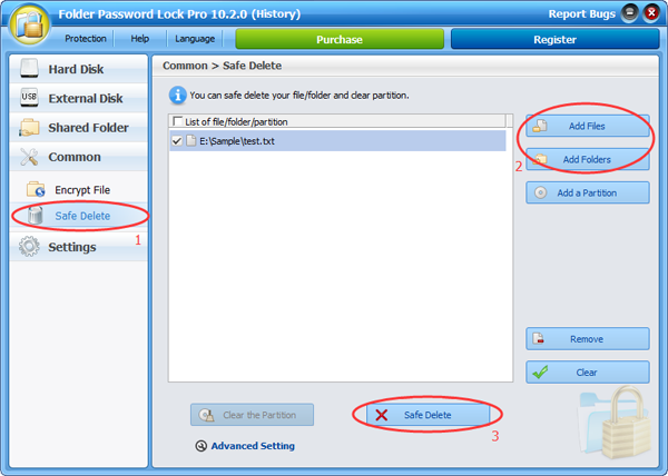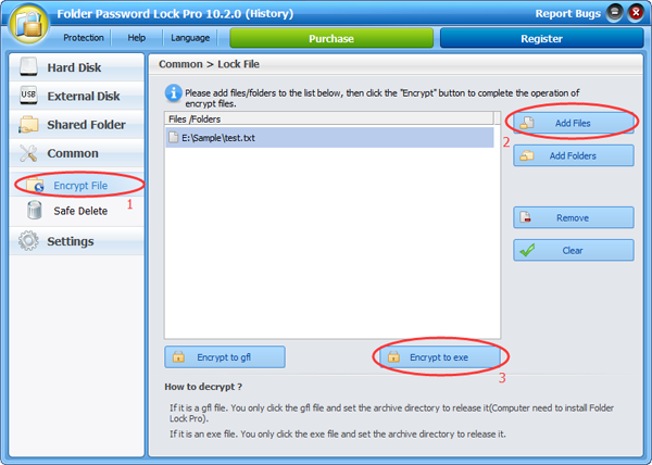 2. Click "Protect File" or "Protect Folder" to add your specify file or folder to the protecting list.
