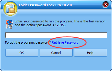 Run Folder Password Lock Pro, click "Retrieve Password". ( To get your password back successfully, please must set an Email account before)