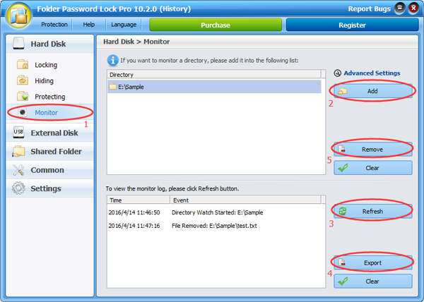 2. Click "Lock Folder" to add your specify folder to the locking list.