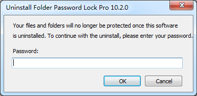 2. Input your password for Folder Password Lock Pro' account to continue uninstalling. (So, no one can uninstall it without a password, this feature only for registered version)
