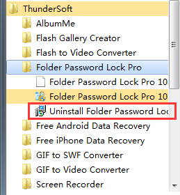 1. Go to "Start menu" in Windows, and find out "ThunderSoft", then select the "Uninstall Folder Password Lock Pro".