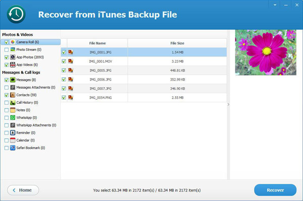 Specify file types you want to extract, if you want extract all data from your backup file, just leave the options all checked.