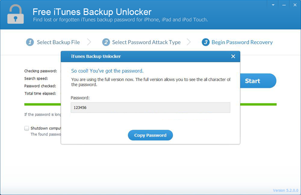 Click "Start" button to start the password decryption process. If unlock successfully, software will pop-up a message box contains your password.