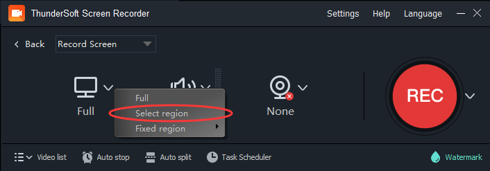 2. Set the recording region where you want to record.