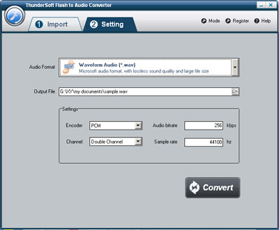 This tutorial is about how to convert Adobe flash file(.swf) to wav file. It's easy to convert swf file to .wav files with our product ThunderSoft Flash to Audio Converter. Only 3 steps, download and install it to get start. Download ThunderSoft Flash to Audio Converter