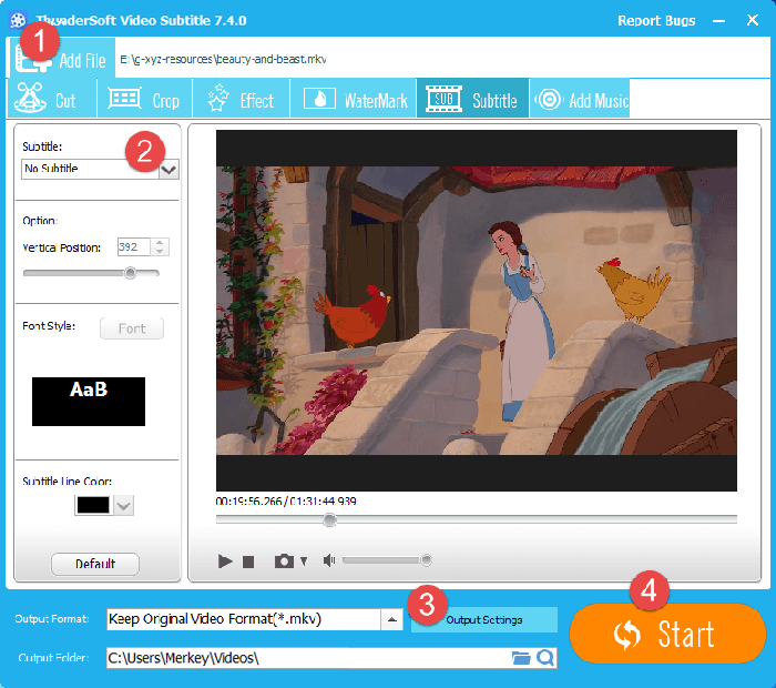 4. When all the process is done, Click on the "Start" button to start adding subtitles to your video.