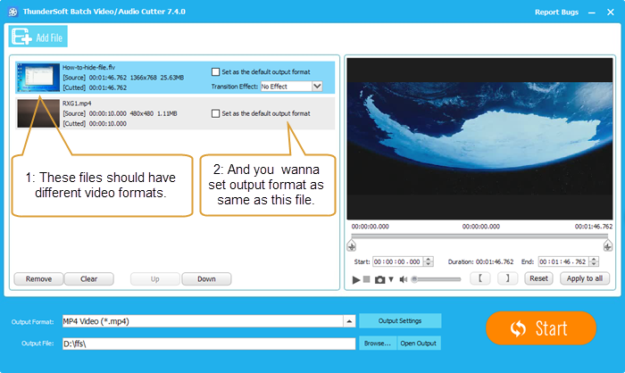 2. Batch Cutter helps you cut multiple video files in batch mode and doesn't change video format. For examle, if you have 3 second clip at the begining that needs to be cut off from EVERY clips, please use Batch Cutter.