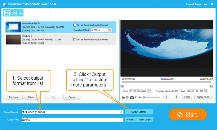 3. Set output format. Join Video/Audio without re-encoding,Join Video/Audio and select an output format from source,Join Video/Audio and custom output format.
