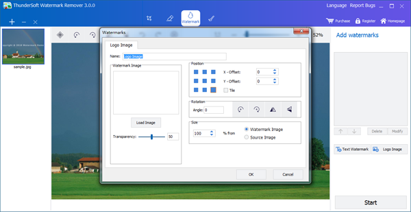 In the "Watermark" page, click "Logo Image" add image watermark.