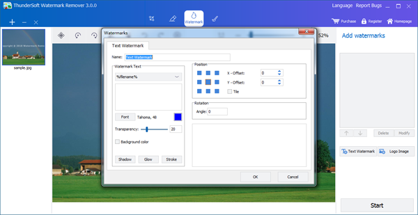 ThunderSoft Watermark Remover can help you remove watermark, logo, date stamp and other unwanted objects on your photo or pictures.